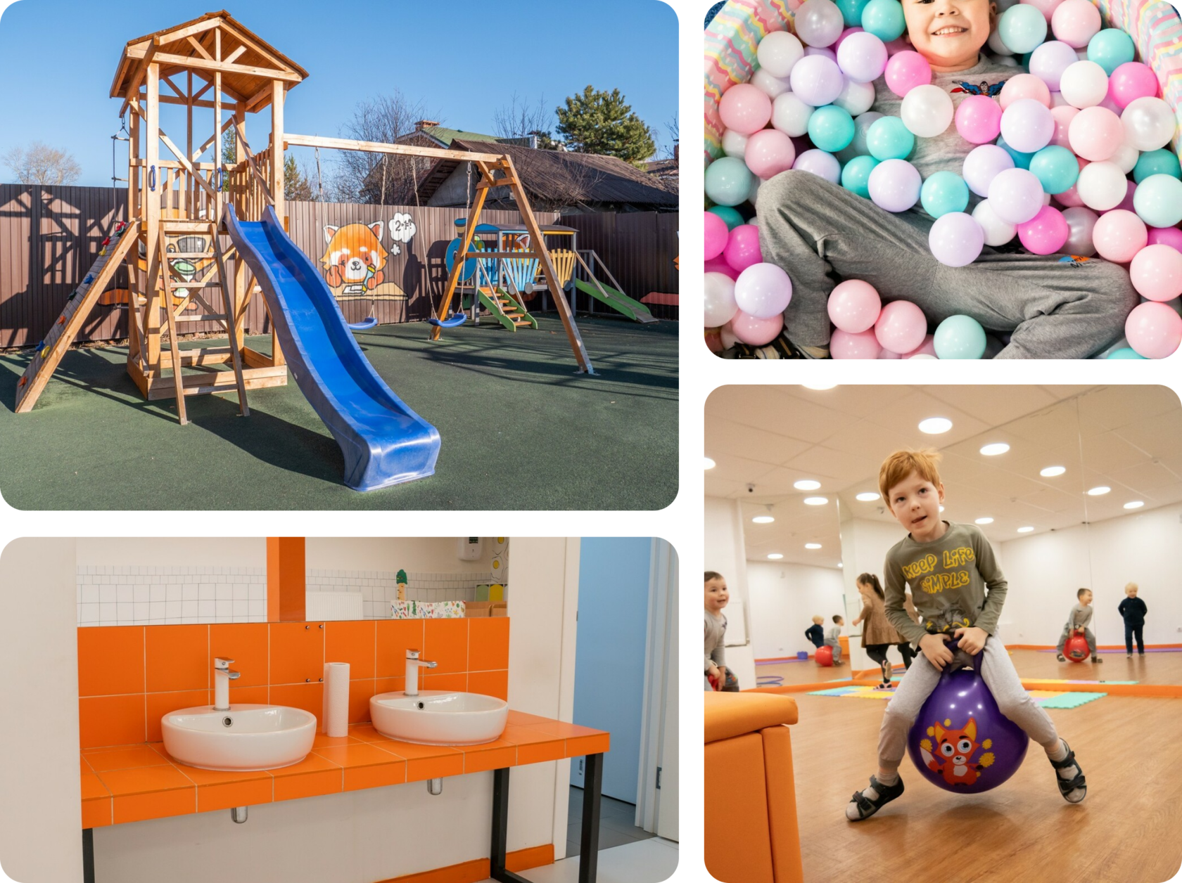 Собственная огороженная площадка для прогулок. Круглосуточная система видеонаблюдения. Каждый родитель может наблюдать за своим ребенком в любое время через приложение в телефоне.